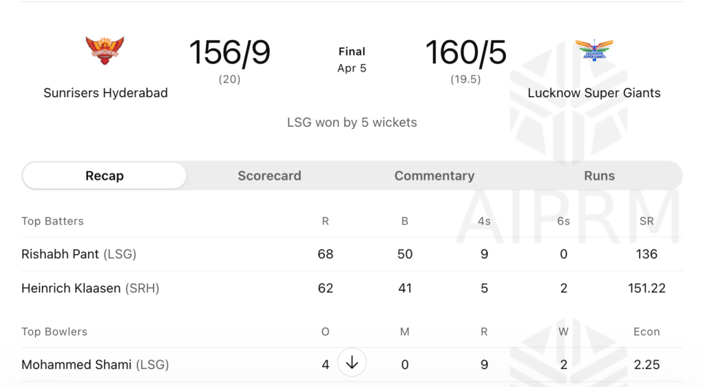 In this article, we will discuss the main points or high lights of Sunrisers Hyderabad vs Lucknow Super Giants Match Scorecard.